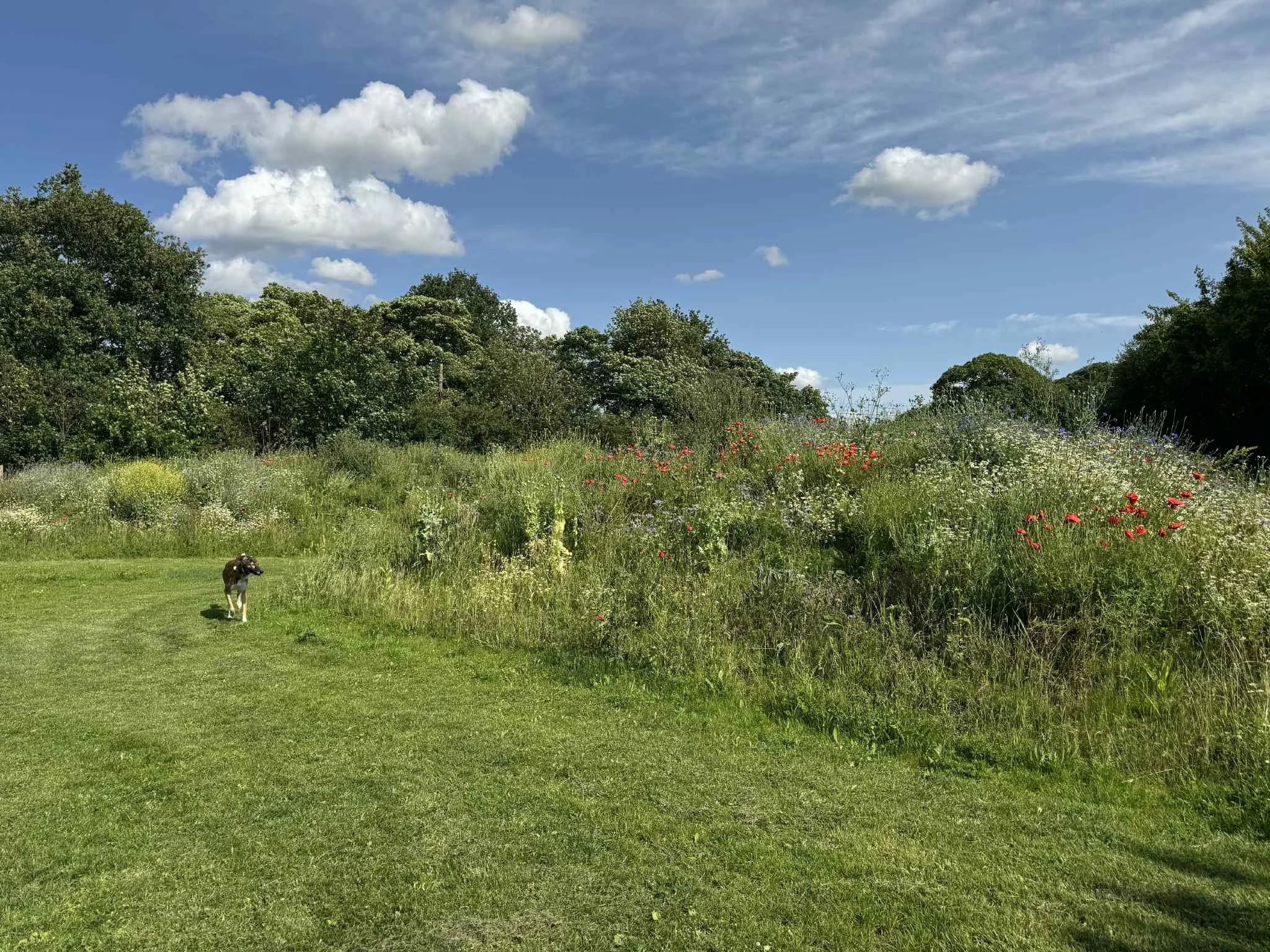 Our new field is filled with dog-friendly wildflowers, covering mounds perfect for exploring and tracks where your dog can sniff to their heart’s content!